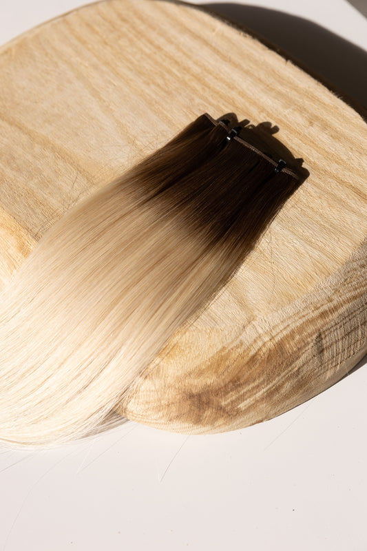 Stella Rose offers high quality Eastern European hair. Our hair is 100% pure virgin cuticle super double drawn hair. Sold as individual wefts to create the most unique blend. Stella Rose wefts are 14" wide, we offer lengths of 18" (22 grams) and 22" (25 grams.)